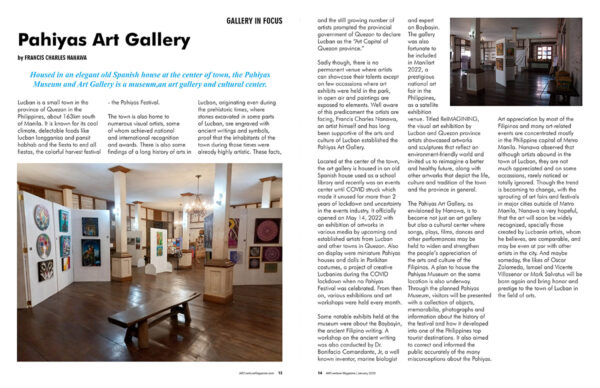 Downloadable digital magazine of ARTventure Magazine maiden issue on January 2023.  Features include Percy Denolo, the Philippines mud artists on the cover and other upcoming artists.